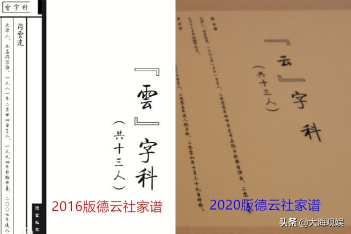 新旧两版德云社家谱“云”字科均是13人