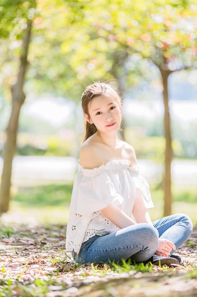 女生户外拍照,可以让自己找一处干净的地方,让自己自然盘腿坐下来,然后眼神看着远方,假装不经意间被拍,也能拍得美美的。