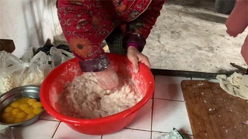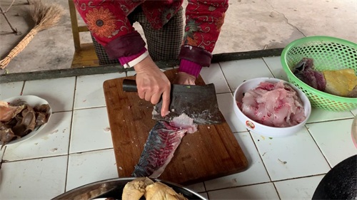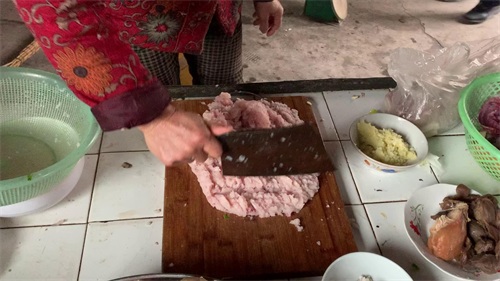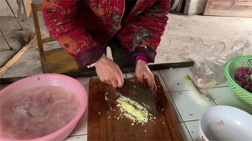 准备葱姜蒜若干,将其切碎备用,同时将泡好的鱼肉取出切碎,有点小骨头没有关系,用刀将其剁烂即可,若有机器可以用机器将鱼肉磨烂也可以,但是个人感觉用刀剁的会香一些。