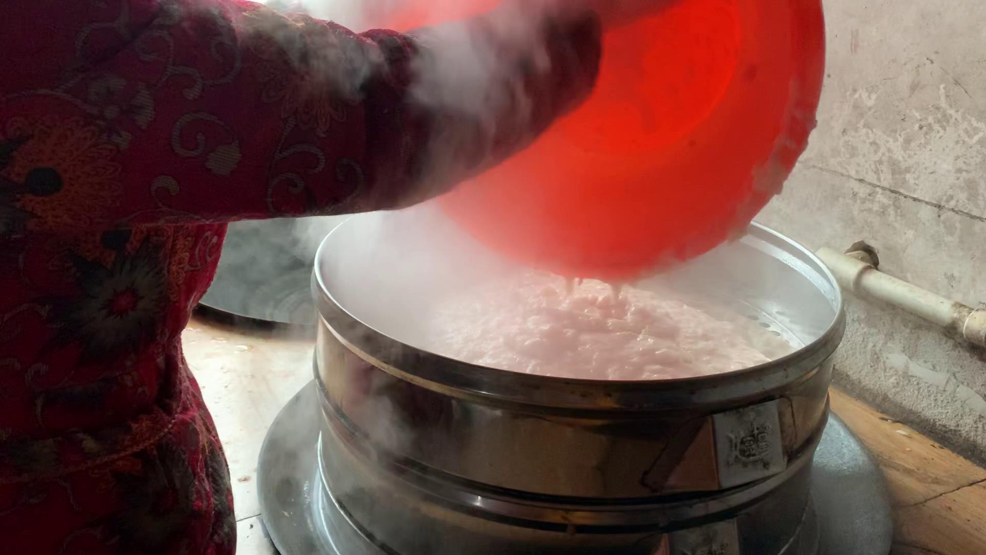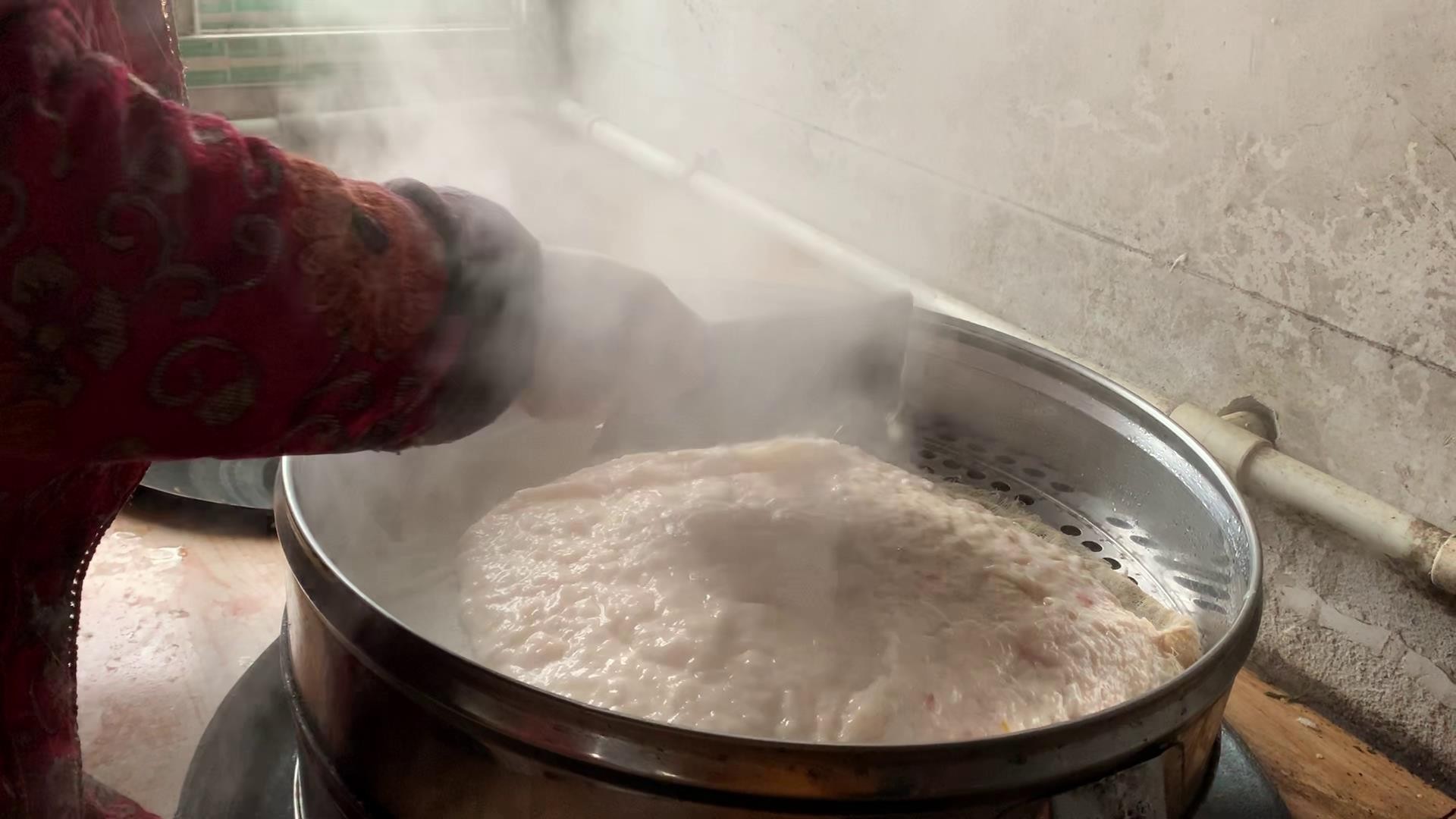 将搅拌好的鱼肉放入到蒸锅内,水要烧开,蒸锅内底下要铺一层布,布上刷一点油防止粘连,大火烧20分左右即可。放到锅内后将其用刀或其它工具向内聚拢,或使用专门治具也可。自家吃不在乎薄厚就无所谓了。