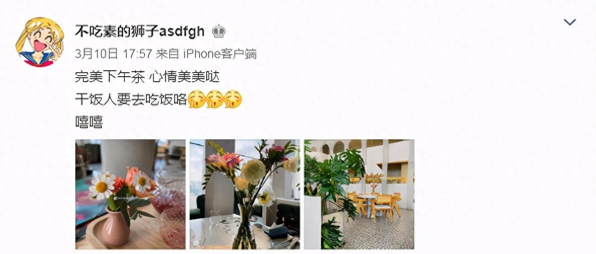 上周,马蓉发布了一张下午茶照片,并配文:“完美的下午茶,美好的氛围。”马蓉贴了一张鲜花的照片,但你可以看到桌子上有几道菜。有一款看起来像约会的手机。虽然马蓉没有晒出自己的照片,但也掩饰不住他的好心情。