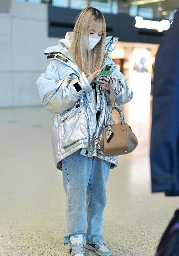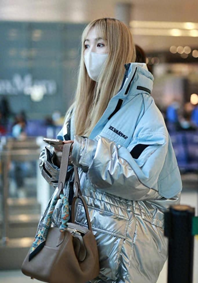3月17日,马蓉现身上海机场,打扮十分亮眼,变化很大造型上,身穿银色羽绒服,搭配一条宽松牛仔裤,一头金色的直发在人群中十分抢眼,颇有女团的感觉。