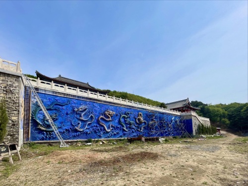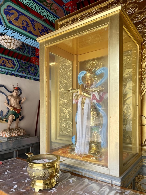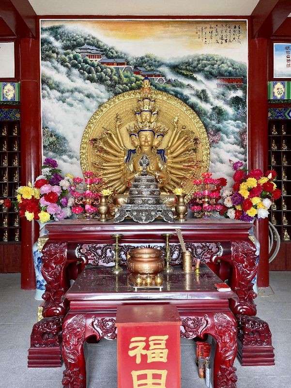大雄宝殿的高台下是四臂观音殿,四臂观音殿两边是立体铜浮雕,应该是观音三十二化身。