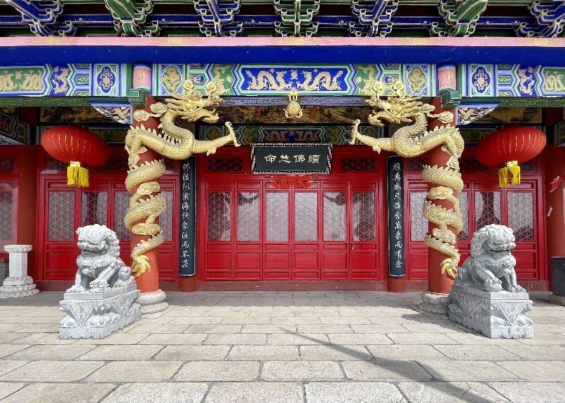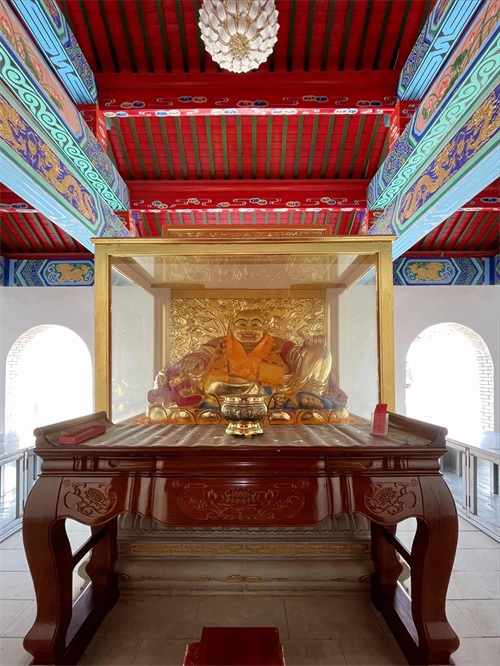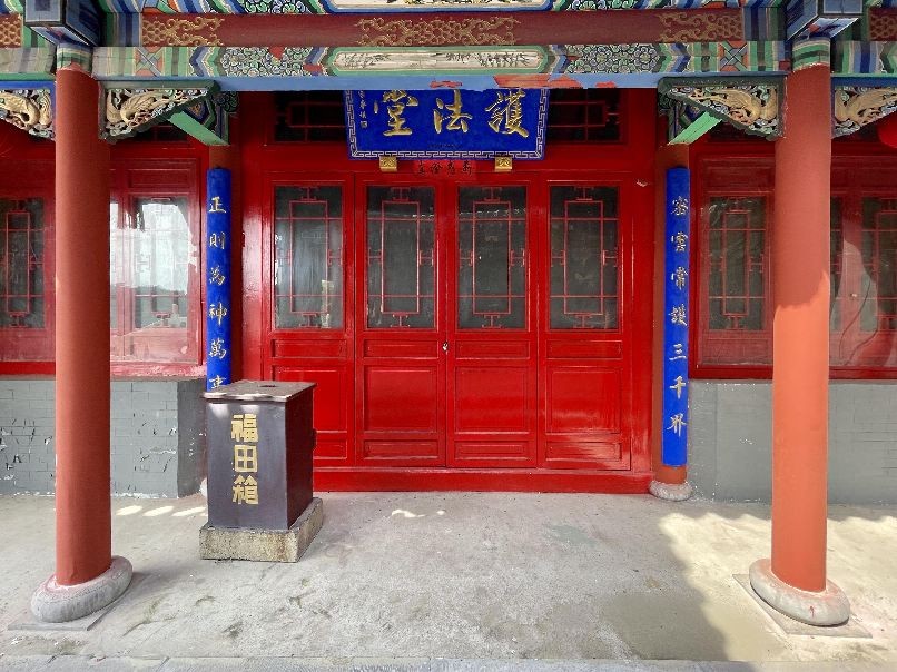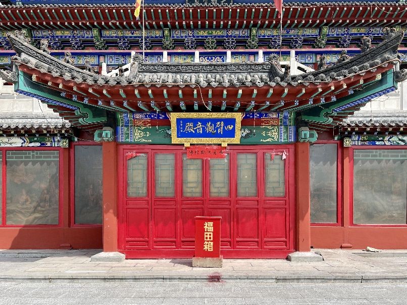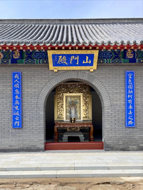 寺院山门左边是僧人生活区,右边是流通处。过了山门就是五路财神殿