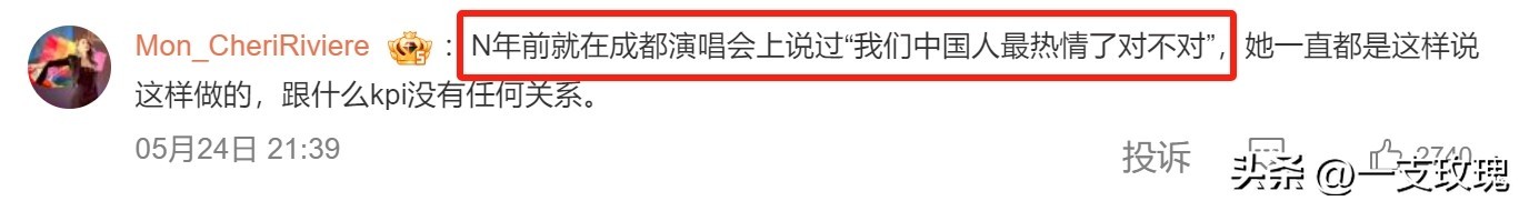而华语乐坛天后,蔡依林就没转发!不过,这并没有遭到网友的吐槽。为什么呢?因为她在5月24日当天,在南昌举办的演唱会,当着数万人的面,大喊“我们中国”了!