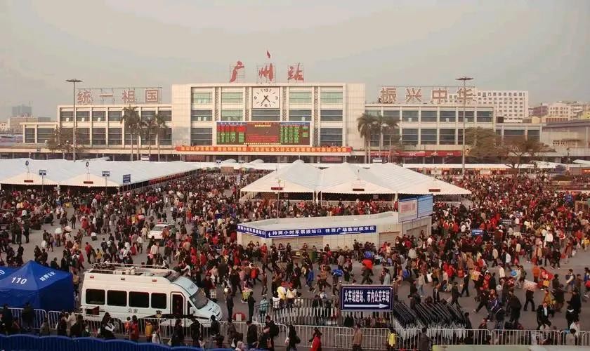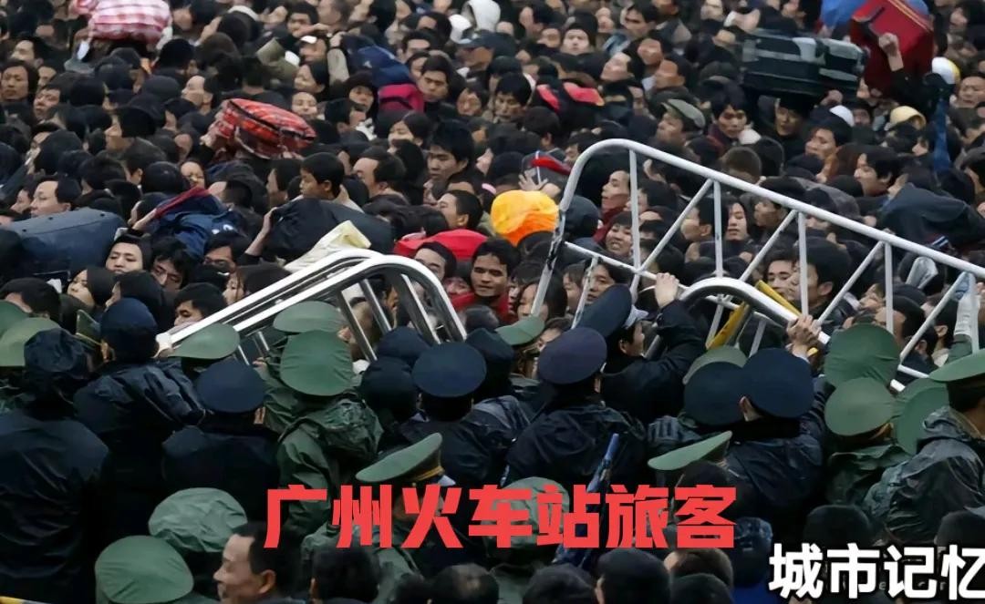 2008年广州春运雪灾事件,40万旅客被迫滞留,车站广场哭声一片。