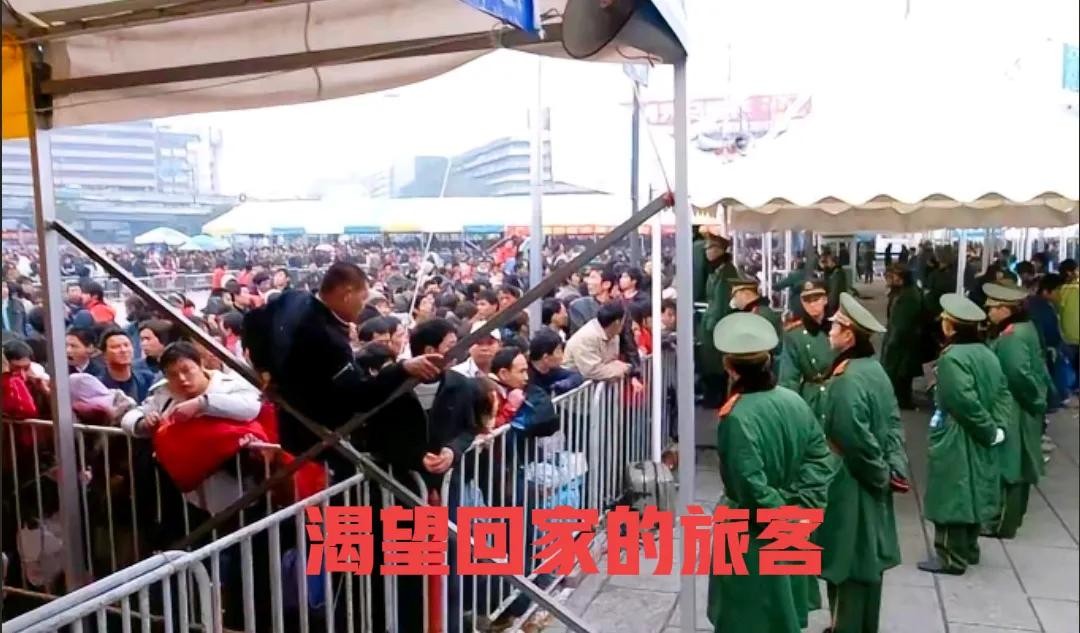 广场上一片惊呼,列车终于来了,因为滞留旅客实在太多,为了能够让大家尽快回家,火车站凡是往南下方向开的列车,不用检票,坐满就发车,旅客们此时经过长时间的等待,已被消磨殆尽的心此刻变得异常激动,大家提着行李,带着亲人,争先恐后的奔向回家的列车。