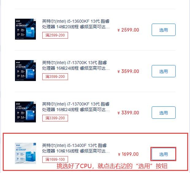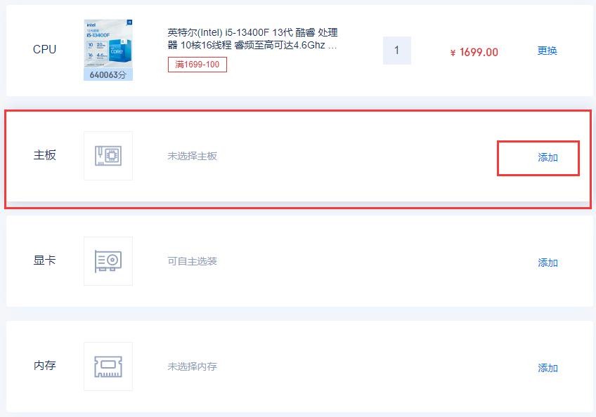 1、挑选CPU。如下图所示:点击红框内CPU右边的“添加”按钮。