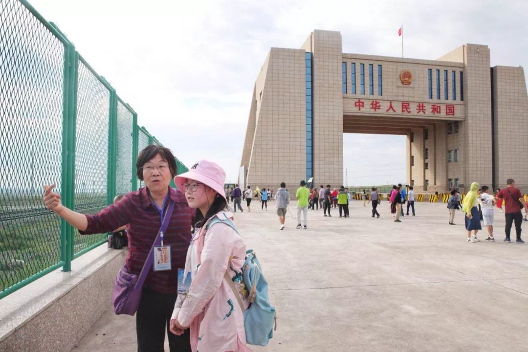 湖北游客参观阿拉山口国门
