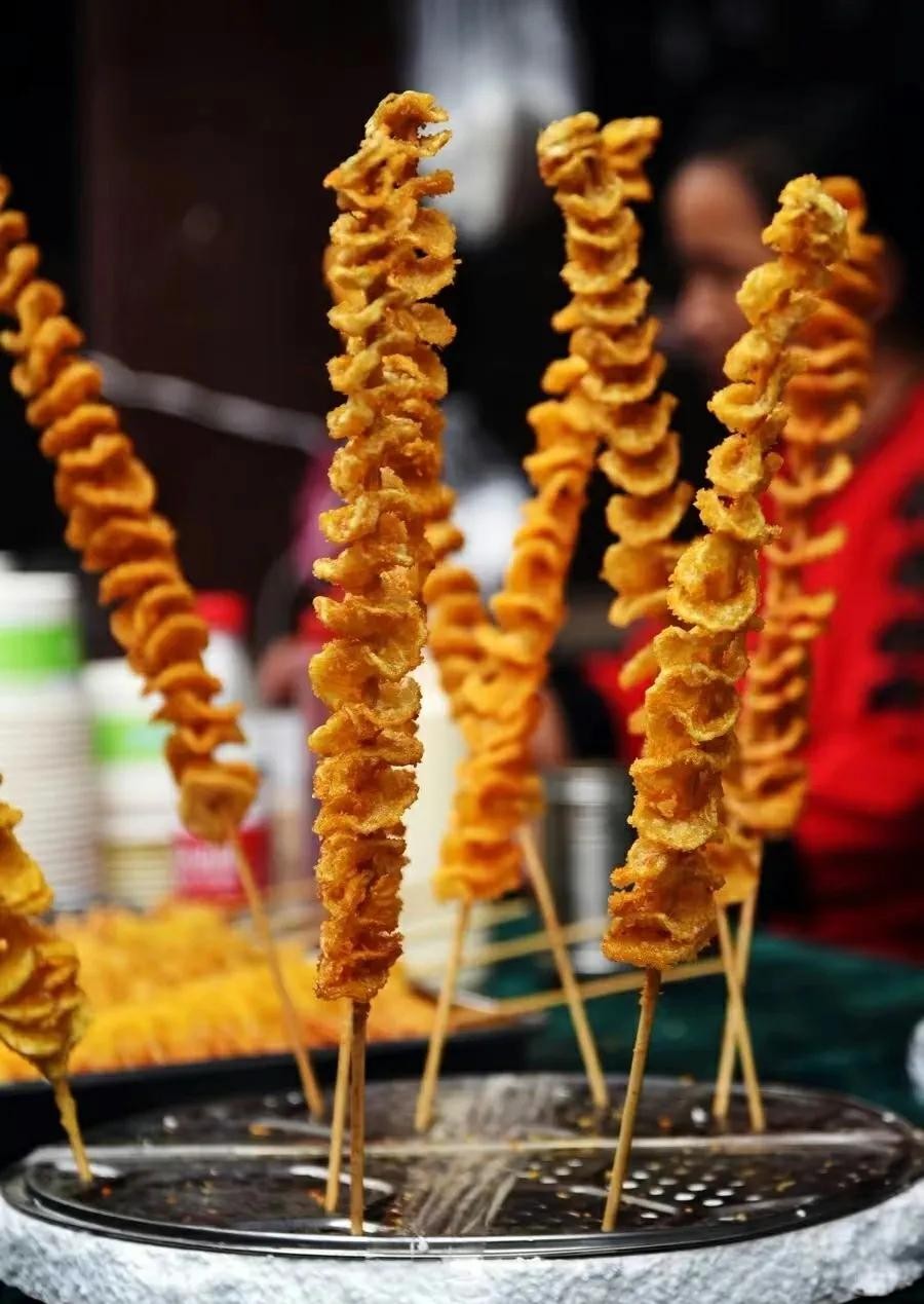 这早点摊上的小吃叫不出名字,倒是第一次见到,脆脆的。