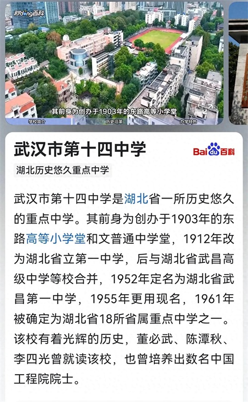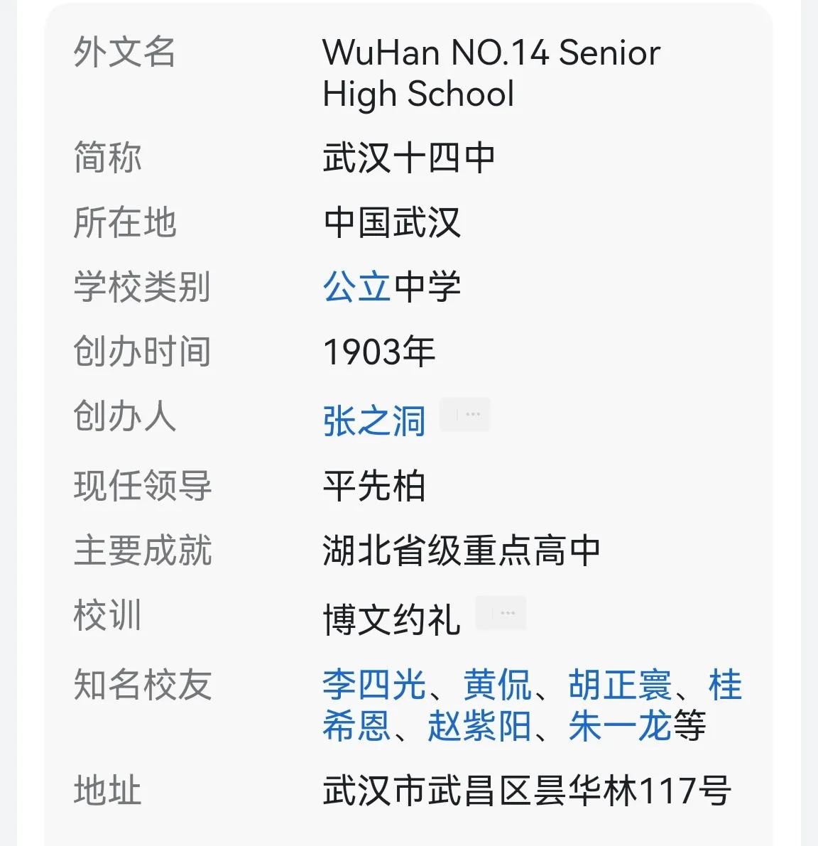 您说武汉十四中是不是武汉杰出校友最显赫的中学呢?
