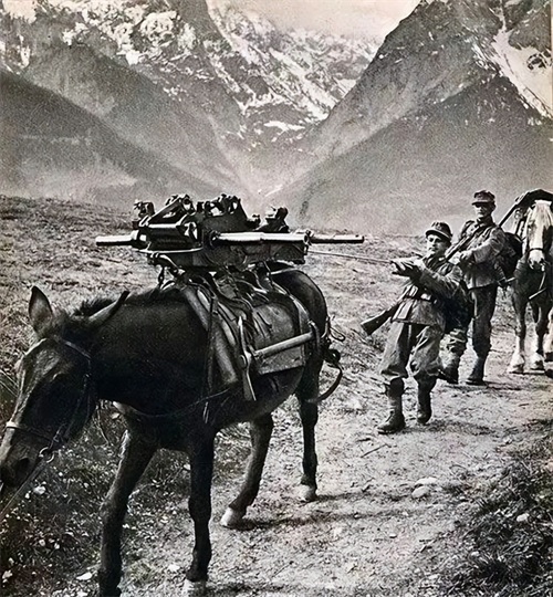 山地师还装备12门重型榴弹炮,4门重型步兵炮,这些武器是在平原地区作战时使用。第5山地师在山区行军时,主要运输工具是牲口,该师配备4300匹驮载枪支弹药辎重的马匹,还有550匹马供骑乘。但遇到崎岖地形牲口无法通过时,还要靠人力运输物资。在平原地区执行任务时,山地师运输方式与山区不同,主要以汽车为主,第5师装备1400辆各式机动车。驮载的马匹在平原也改为挽曳,该师配备600辆畜力车。