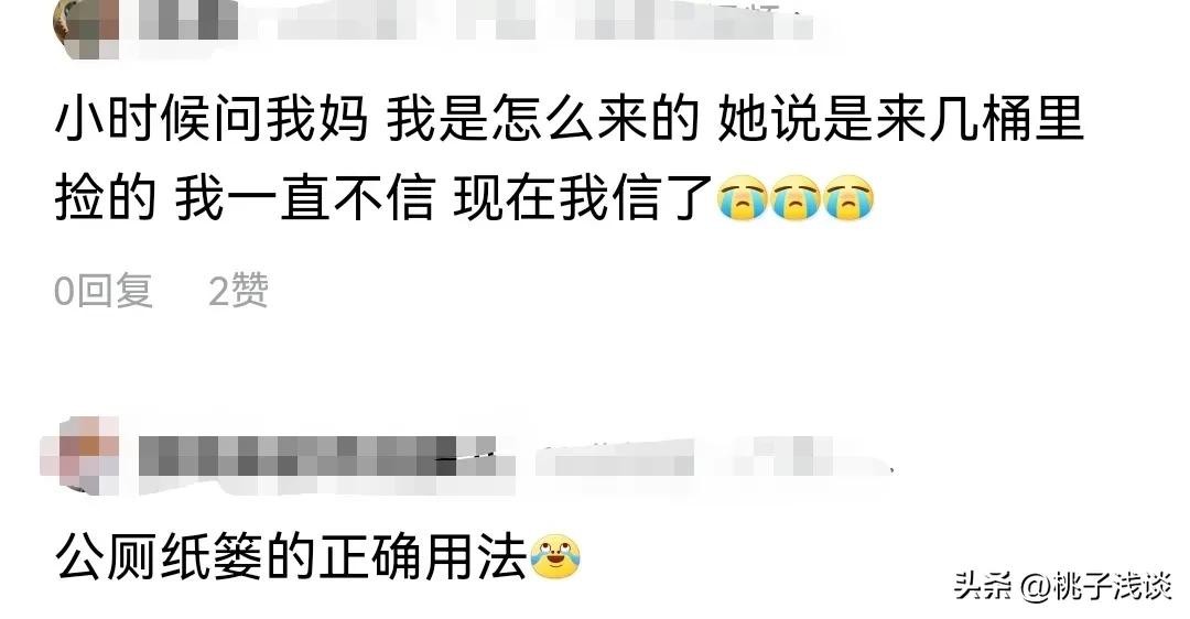 还有网友调侃说,“小时候问我妈,我是怎么来的,她说垃圾桶里捡来的,我不信,现在信了”,“公厕纸篓的正确用法”。真的是很讽刺。