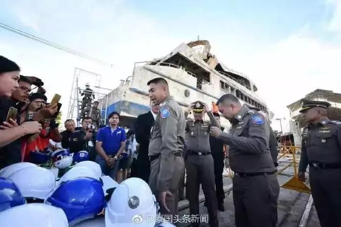 11月21日下午,泰国移民局长素拉切警少将带队再次邀泰国头条新闻重返普吉,来到拉达纳猜船坞听取船只调查进展并登上沉船“凤凰号”一探究竟。