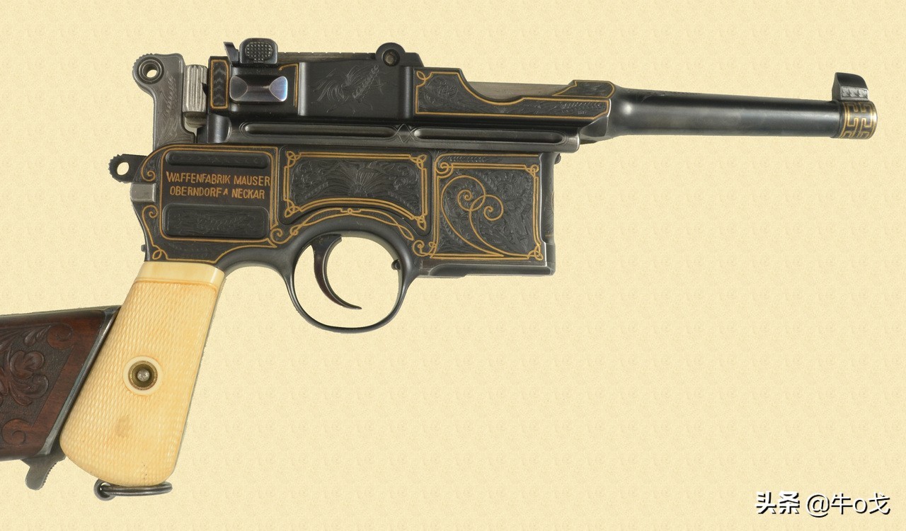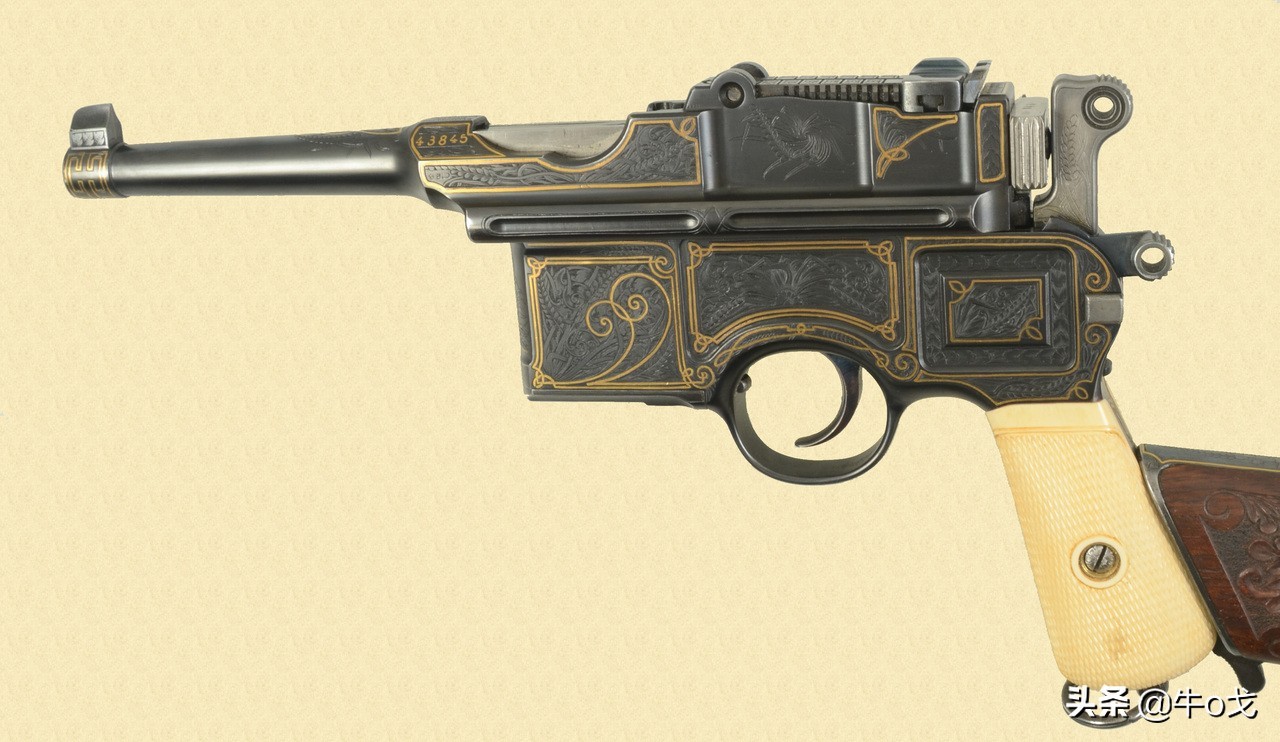 在进入到二十世纪后,六响的驳壳枪已经停产,而从机锤样式看,这显然又是二十世纪初的出品,而且用了象牙握把,镀金雕花。可以猜测,这应该是应某位有钱有势的贵族的要求,私人定制的。至于是哪位贵族,我也不知道。