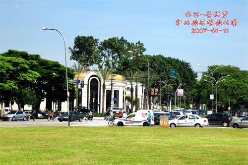 圣保罗是巴西圣保罗州的首府,不仅是巴西而且是整个南半球最大的都市。圣保罗地处巴西高原,平均海拔达800米,因地势比较高,夏季多雨凉爽,冬季干燥偏冷,无严寒,无酷暑,是一座气候宜人、林木苍翠、风光秀丽的城市。我们的巴西行程安排是从圣保罗进,圣保罗出。1月7日入境后直接去了里约热内卢。中途从伊瓜苏去玛瑙斯又路过圣保罗,此后从玛瑙斯返回圣保罗离境。但是毕竟都是路过,所以在圣保罗仅参观了伊比拉布埃拉公园。这里原是印第安人的村落,后慢慢演变为公园。在这里我们参观了开拓者纪念碑、五指留念碑、拉美议会大厦和拉美风俗博物馆。拉美议会大厦是一座圆柱形的建筑,蓝色玻璃幕墙,白色房顶;拉美风俗博物馆是一处半月形的建筑,在博物馆的大厅之中展现着拉丁美洲的许多传统的民族艺术作品。