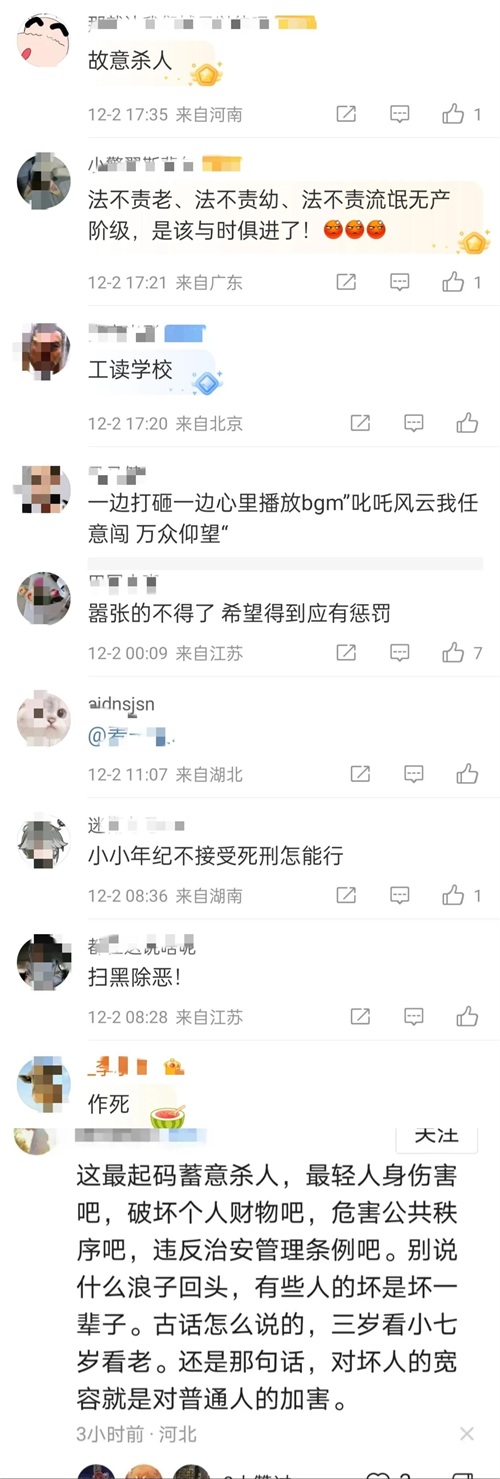 网友说道:这最起码蓄意杀人,最轻人身伤害,,破坏个人财物,危害公共秩序,,违反治安管理条例!别说什么浪子回头,有些人的坏是坏一辈子。古话怎么说的,三岁看小七岁看老。还是那句话,对坏人的宽容就是对普通人的加害。