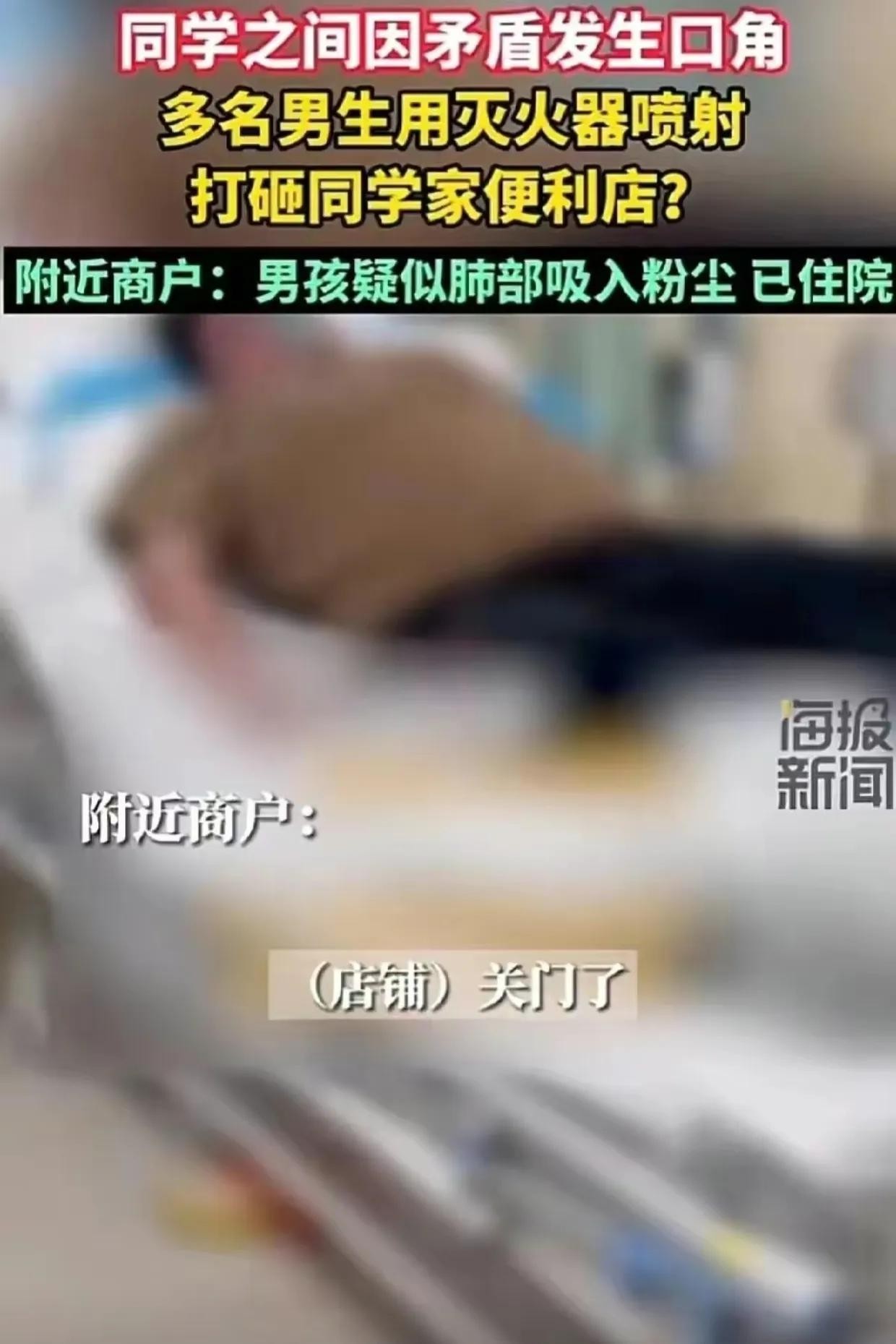【徐州多名男生用灭火器喷射便利店?附近商户:疑似有人肺部吸入粉尘后住院】因私人恩怨多名男孩打砸便利店。