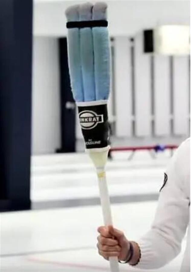 原来在冰壶比赛中当一名掷壶手投壶时,队友会在冰壶行走的路线前快速拖地,行话叫做刷冰,而这时就需要一种工具 —“冰壶刷”的帮助。这玩意乍看上去,好像跟我们日常用到的拖把差不多,但其实这可不是普通的“拖把”,里面可大有学问!