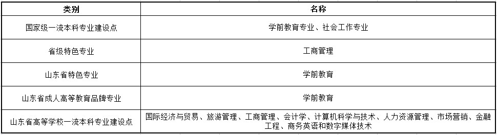 在学科建设方面,工商管理被评为省级重点培育学科,另有企业管理、旅游管理、社会学、计算机应用技术、学前教育5个校级重点学科。在教学建设方面山东女子学院有省级特色专业1个,山东省特色专业1个、山东省成人高等教育品牌专业1个。同时,有10个本科专业入选山东省高等学校一流本科专业建设点,2个本科专业入选国家级一流本科专业建设点。