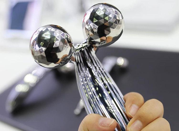 这个有着两个蛋蛋的美容仪,其实外观设计还是挺走心的。光滑的手柄搭配两个滚轮,滑稽的造型有些让人想入非非,但也不得不说创意满分。再加上炫酷的金属外衣,浑身都散发着一股土豪气息,难怪令小哥哥小姐姐们爱不释手。