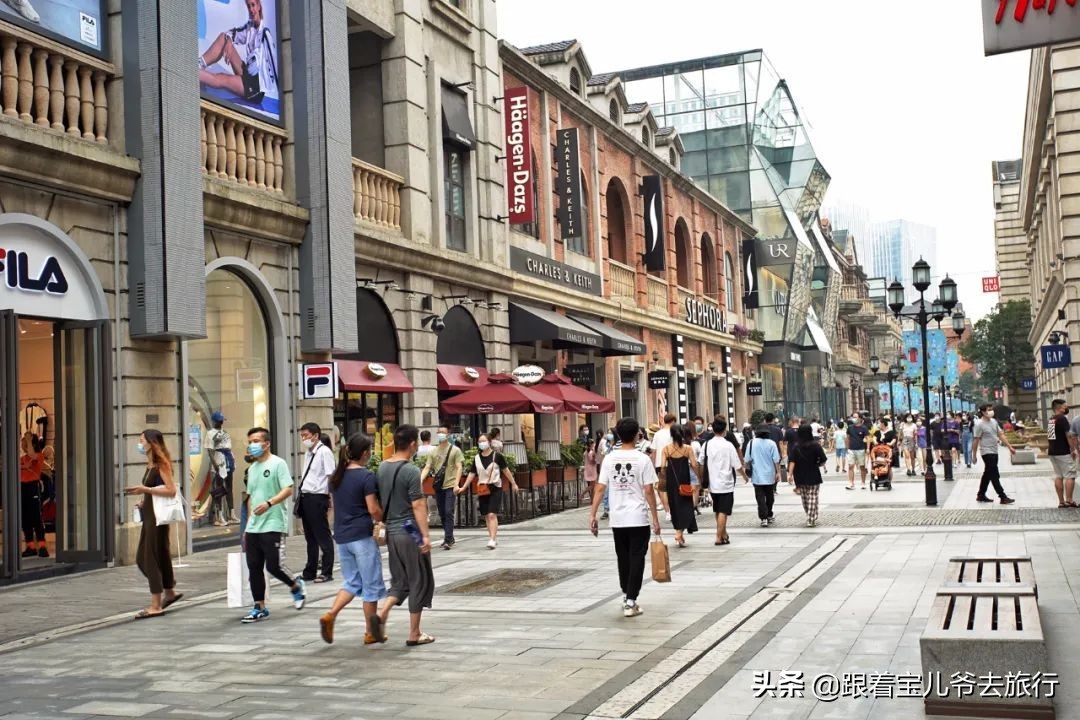 整条街道两侧,清一色民国建筑风格,其实也就是上个世纪初的欧式建筑风格,中间偶尔会夹杂一些现代化的建筑元素,摩登感强烈。
