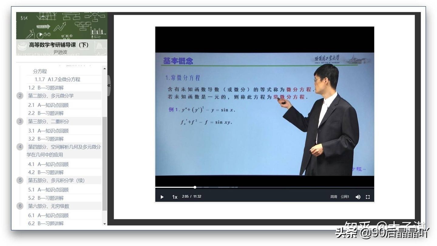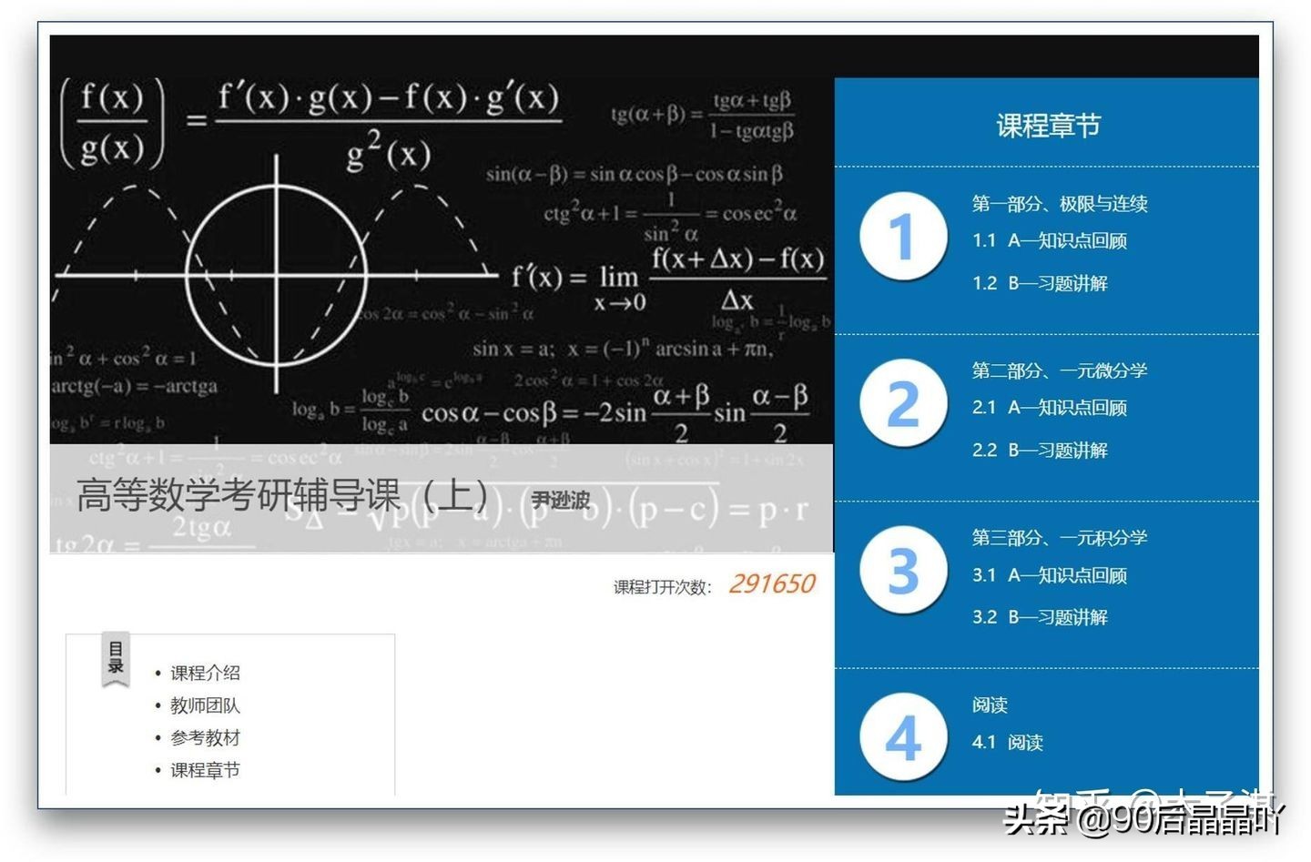 例如我们点击高等数学考研辅导课,这里提供了章节视频课程包括:极限与连续、一元微分学、一元积分学,还提供了课程介绍和参考资料。