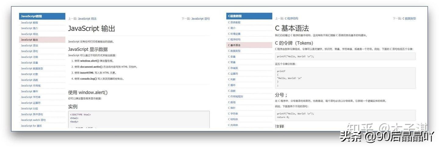 它所有的教程都是以文字的形式展示,每个教程也分为很多章节,每个章节的内容不会很多,提供了大量实例代码,让你学习起来不会感到很枯燥,反而学习效率会很高。