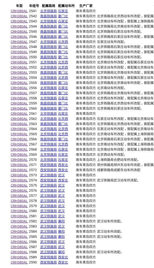 CRH380A配属表