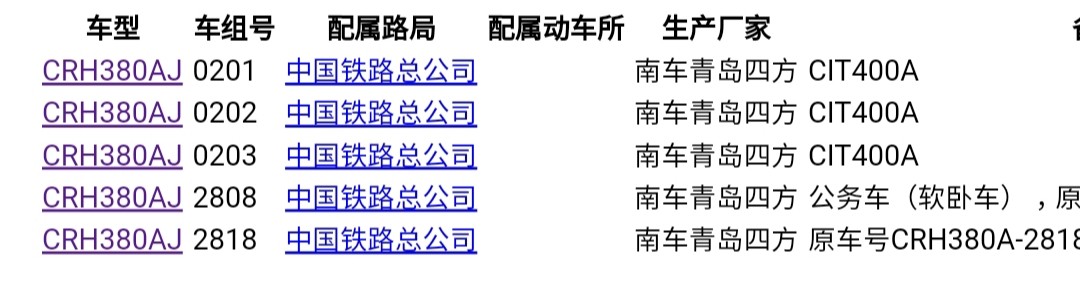 CRH380AJ全部配属铁总