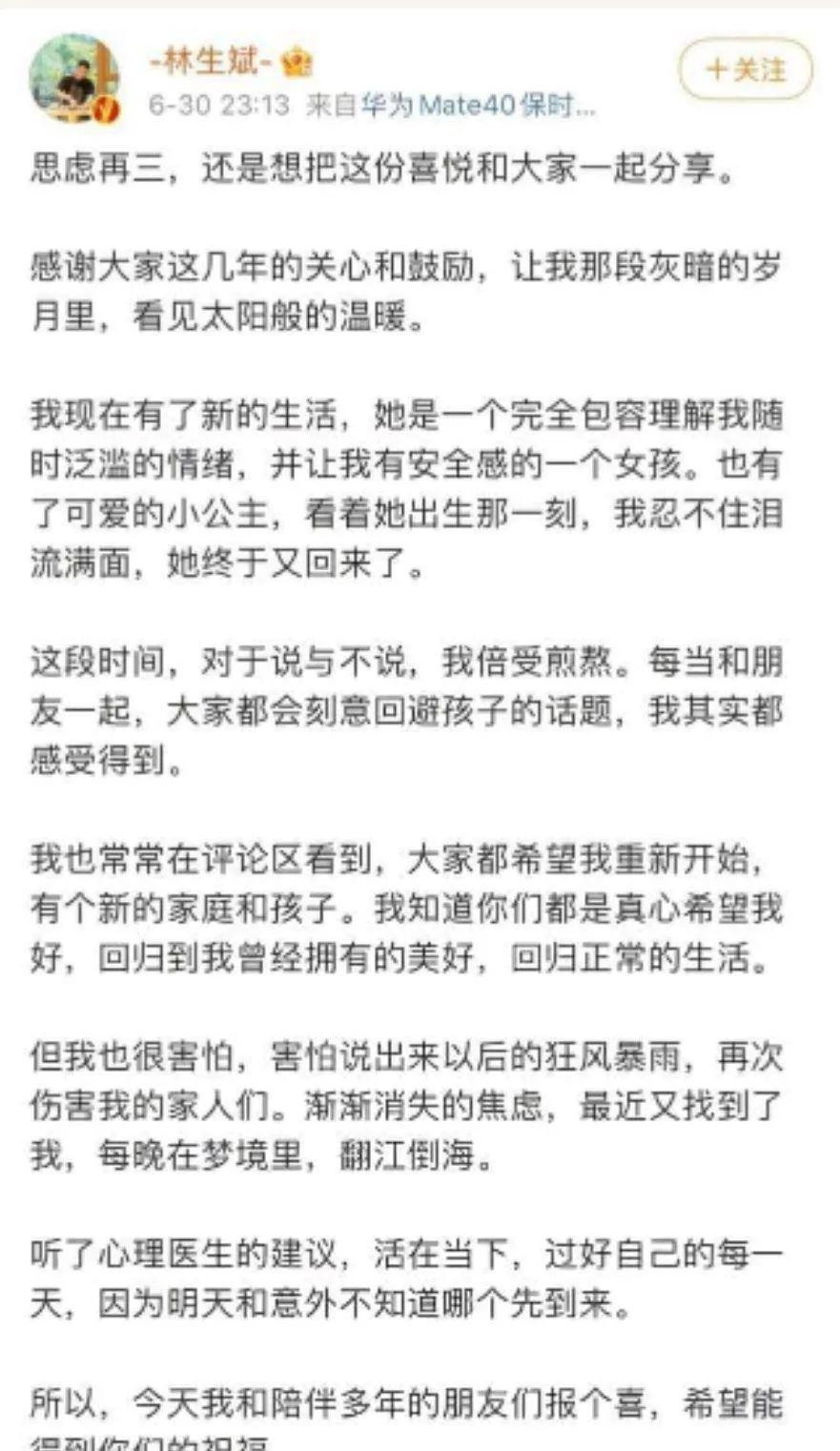 2021年,林生斌有了孩子。