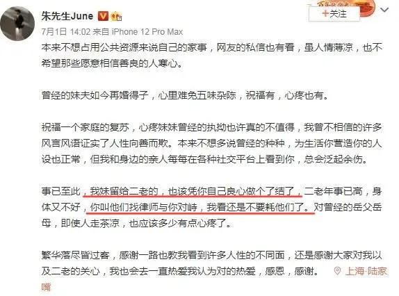 朱小贞哥哥微博(图源百度百科)