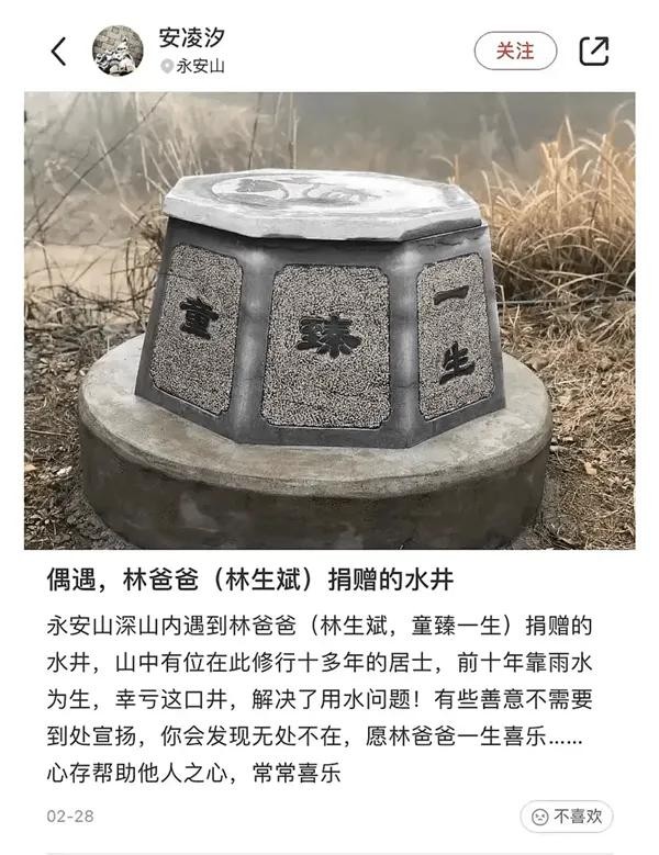 一网友称偶遇林爸爸捐赠的水井。