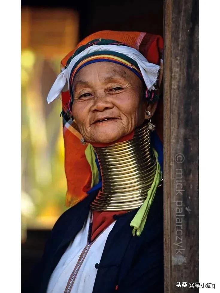 长颈族 泰缅边境的巴东族女性会在颈部佩戴铜圈。她们在5岁的时候就要在脖子和四肢套上铜圈,从10岁开始每年加一个,一直到25岁为止,利用铜圈的重量压迫锁骨使脖子伸长。这些环不断往上添,而且终生要佩戴,并一生只有几次机会才能取下来。