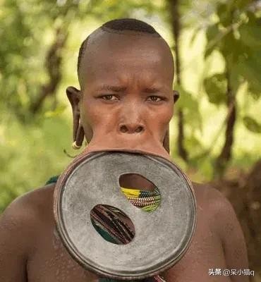 她们有独特的“唇盘”装饰,以唇部的畸形为美。而在埃塞俄比亚,还会有女性移除下颚牙齿,穿透下唇,耳部也相应的穿孔并带有扩大耳垂的圆盘。