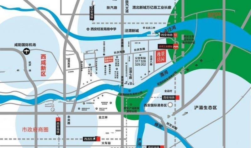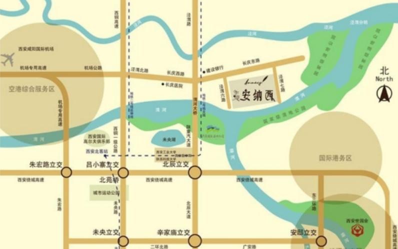项目附近,万亩生态湿地公园环抱,政府投资的渭河西安段改造工程,将建成59.28公里生态堤防,1.2万亩景观绿化带,4处人工湖,2.43万亩城市水景观,5.4万亩湿地。是西安难得的上风上水贵胄之地。直面渭河、灞河交汇处,3公里广阔水面美景尽收眼底,无遮挡绵延碧波视野,纯净鲜氧净化保卫健康。户户俯瞰108平方公里渭河。