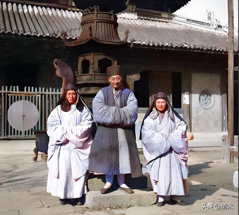 清末上色老照片:女道姑与道士罕见合照,电视上演的都是骗人的