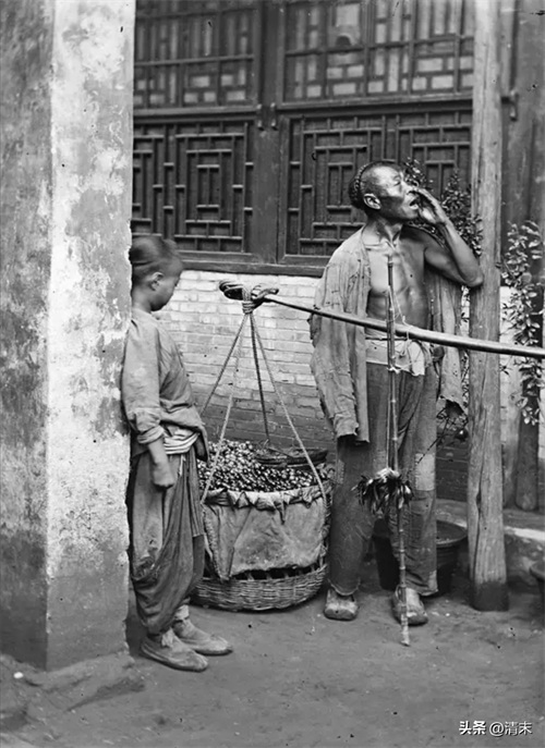 卖糖炒栗子的商贩,在街上扯着嗓子叫卖。都是小本经营,谋生艰难。摊贩的经营品类也反映了一地的风土人情,最为活跃的就是小吃摊。小贩的叫卖方式并不相同,都有一定的特色,人们从叫卖声里就能判断出商贩卖的是什么。他们一辈子就操持一业,想转行都难。