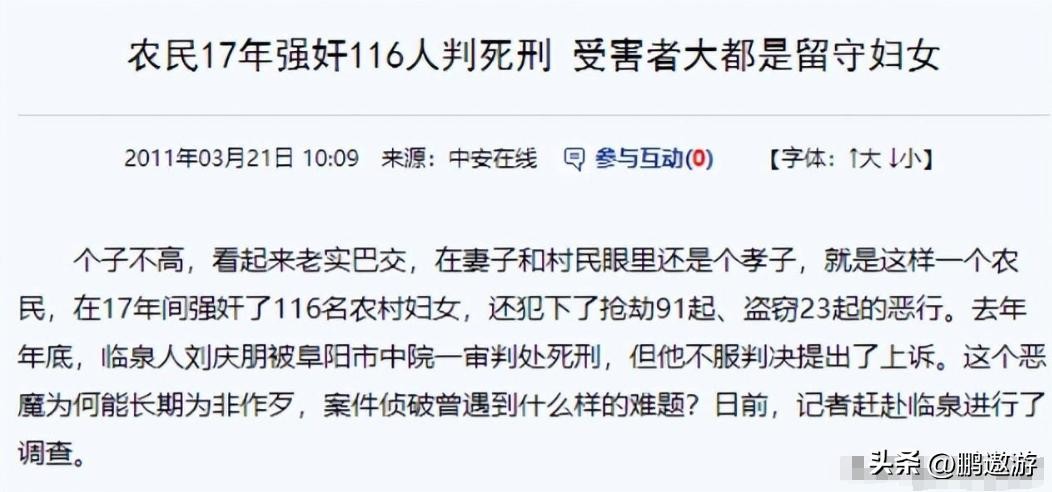 中安在线:(《农民17年强奸116人判死刑 受害者大都是留守妇女》2011.03.21)