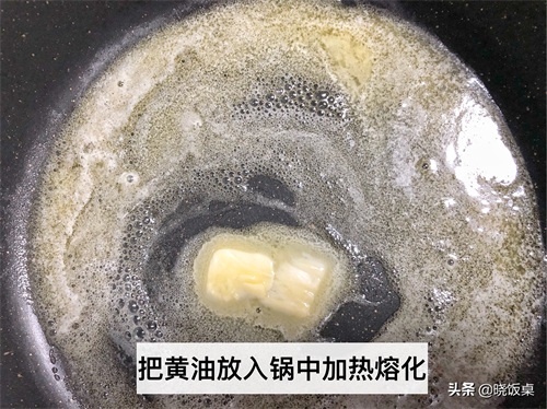 2、蔓越莓干切碎后起锅放黄油并把黄油加热至熔化。