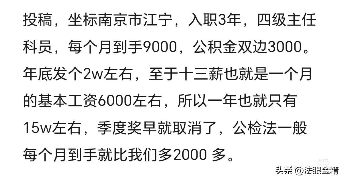 据这位同学透露当地公检法每月到手多2000元,也就是11000元,每年多出了2万元左右。