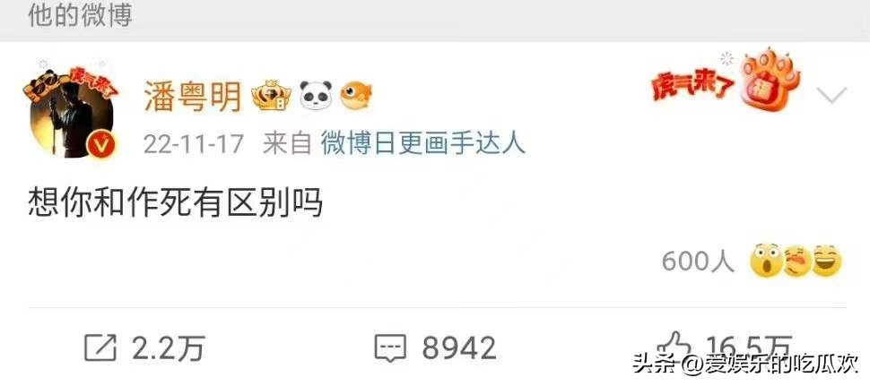 2022年11月,潘粤明又突然发文:想你和作死有区别吗?