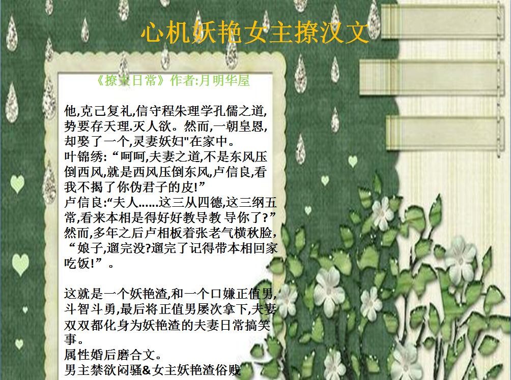 最近很多小可爱都爱看妖艳女主撩汉文,所以今天整理了16本出来,都是高质量的好文哦!有你心中的那个妖艳女主吗?