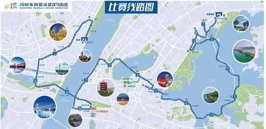 2018年汉马继续沿袭了2017年经典路线,象征着武汉城市商业文化基因与人文历史胎记的中山大道、穿越了亚洲最大的城中湖的东湖绿道、经历60年风雨沧桑的万里长江上第一座铁路、公路两用桥梁——长江大桥等经典城市景点和地标,逐一展示武汉精华地标。