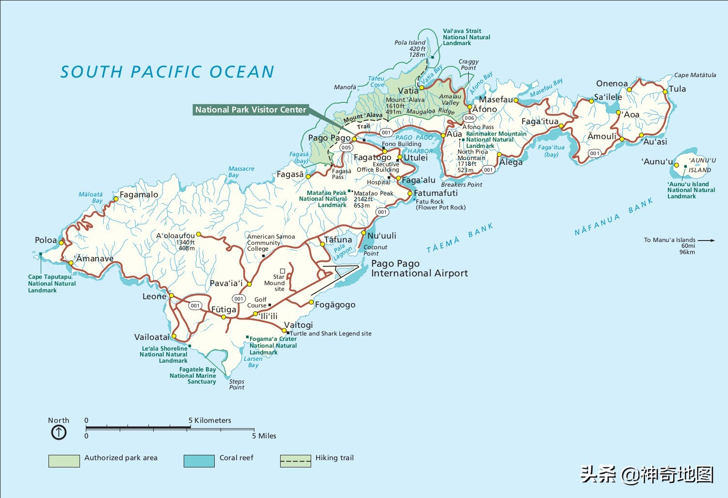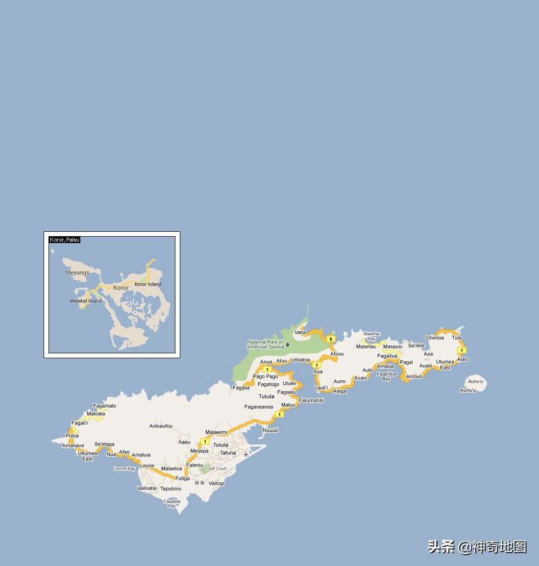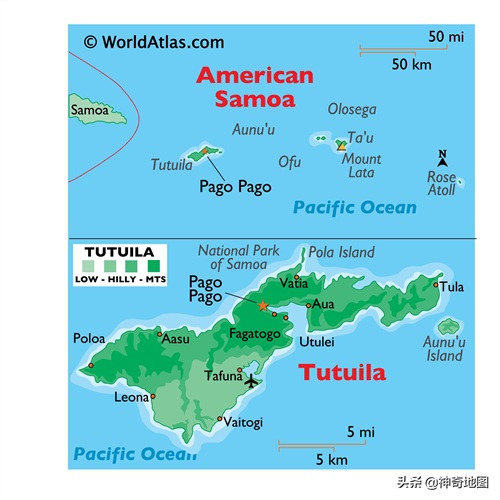 美国的军事实力遍布全世界,感觉到处都有美国的领土,甚至不乏有些国家和地区哭着喊着要加入美国,但在美国内政部正式注册的海外领土只有不多的几个,其中最南端的领土就是美属萨摩亚(American Samoa),又称东萨摩亚,跟第59期的时候讲到了萨摩亚独立国(西萨摩亚)地理上同在萨摩亚群岛。