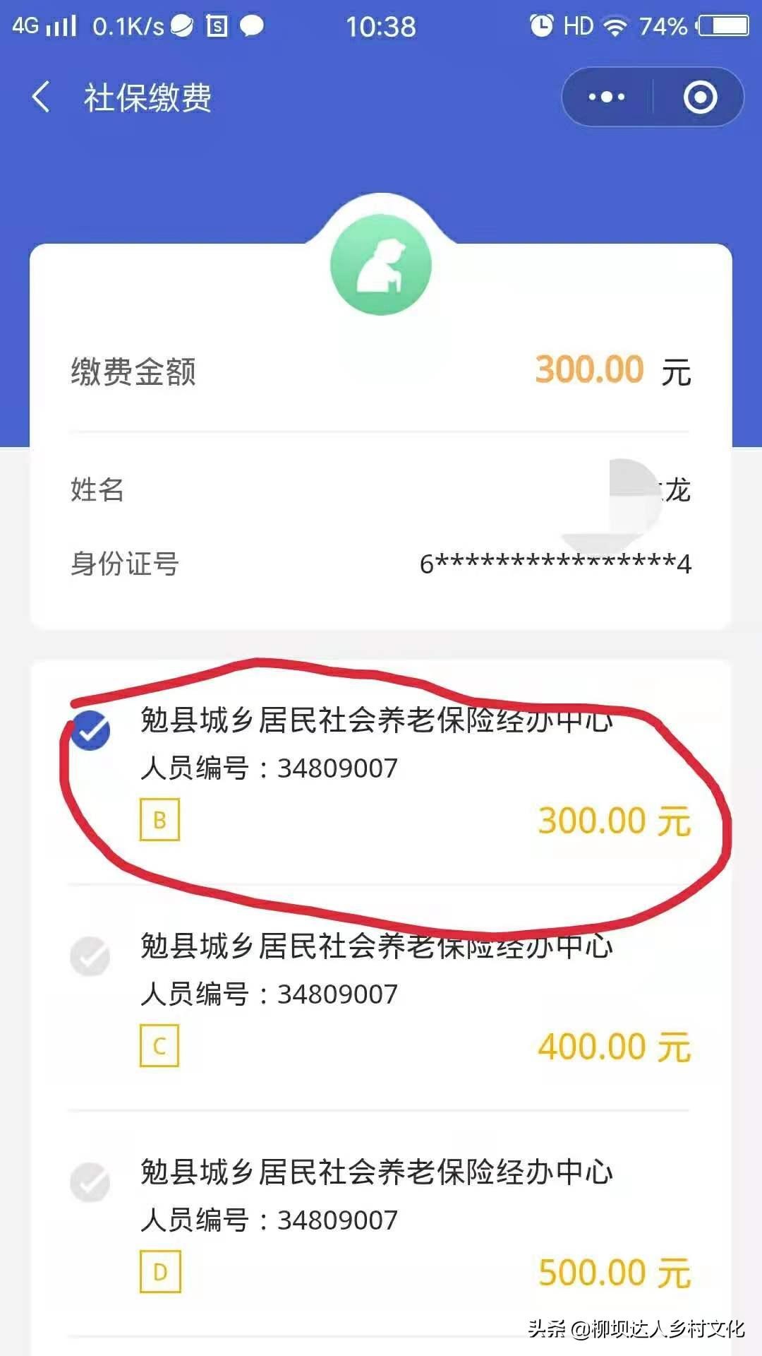 第六步:选择缴费金额分为:300元---3000元不等,可根据自己情况进行选择缴费金额,并点击下一步。