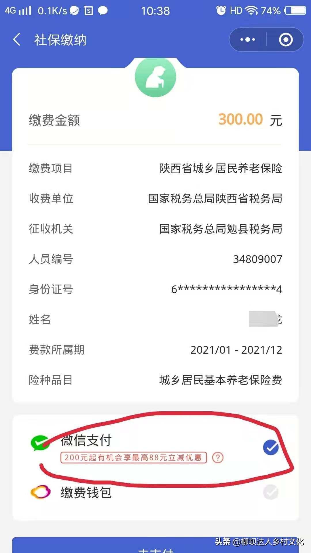 第七步:进入支付,点击微信支付,显示支付成功,即完成本年度缴费任务。