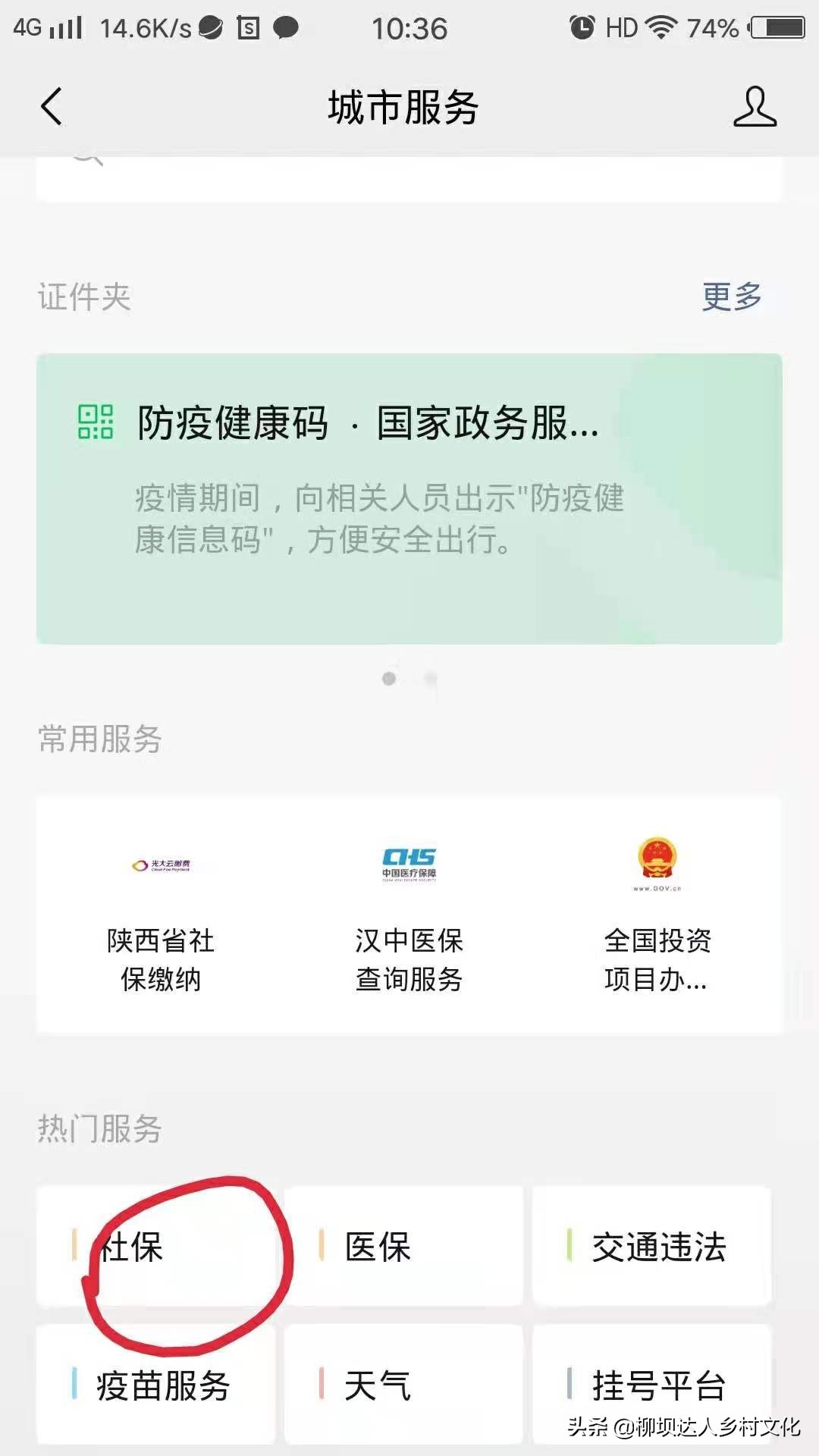 第二步:找到热门服务中的“社保”点击进入