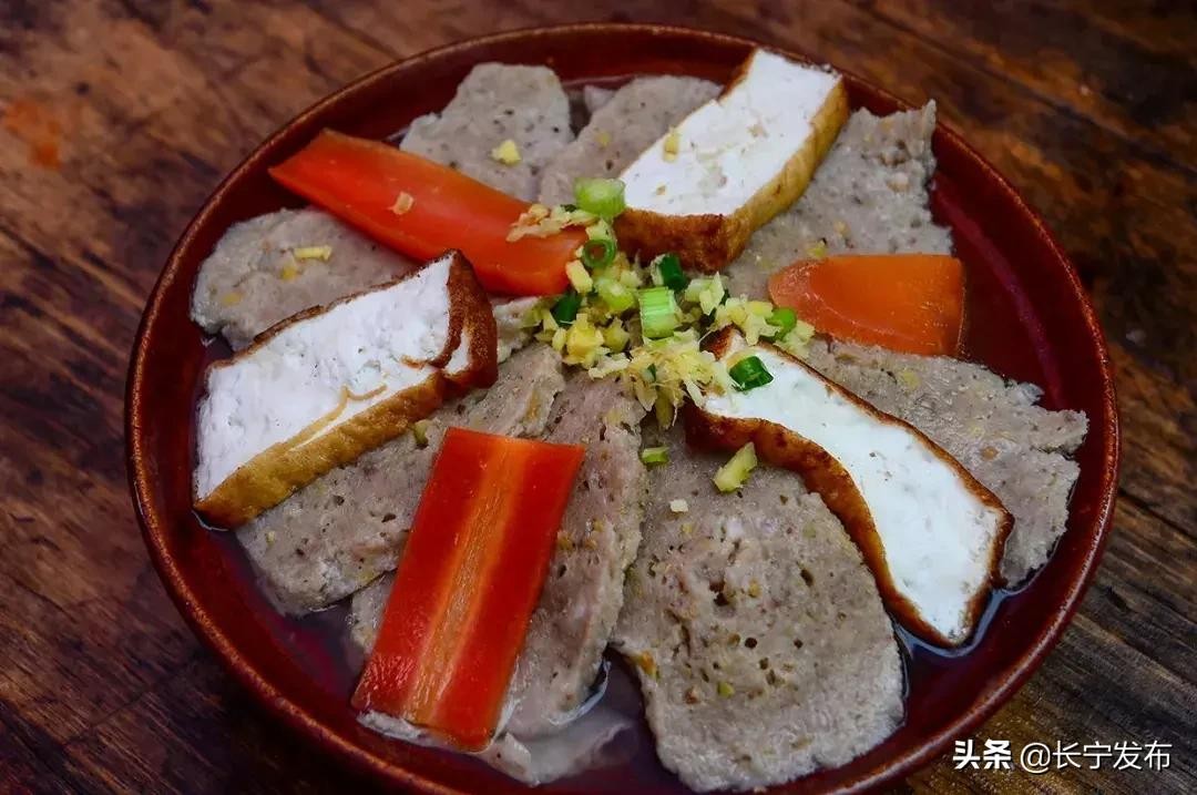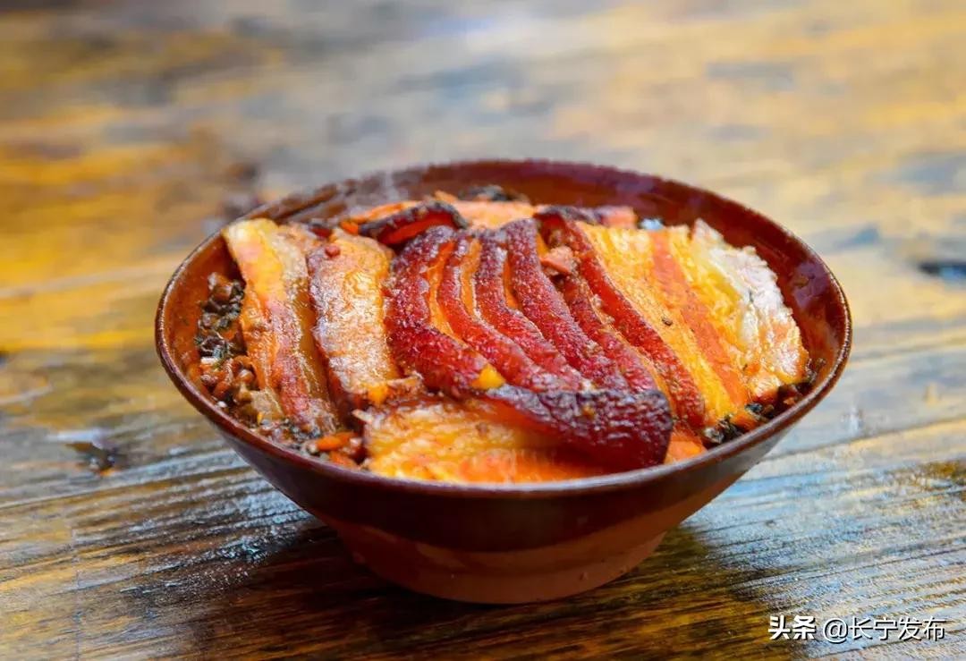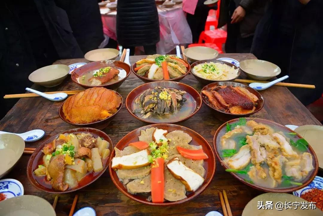 铜锣天成九大碗,恰似柔间带浅红
