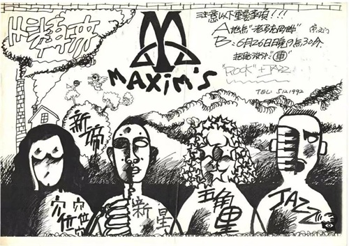 鲍家街43号是成立于1993年11月,他们的第一次演出是在1994年的2月,也就是马克西姆西餐厅,这张海报也记录下了他们的首度亮相。